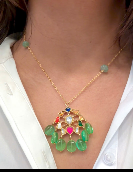 Shruti Dainty Kundan Necklace - Navratan