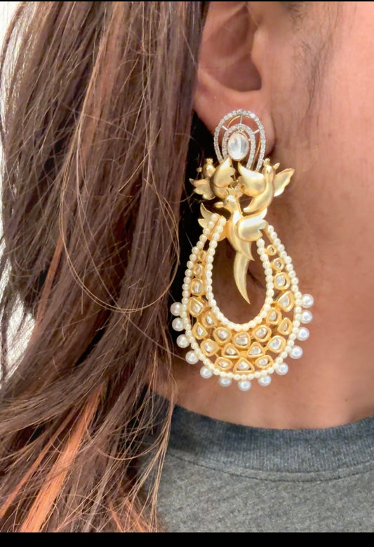 Contemporary Matt Gold Kundan Earrings