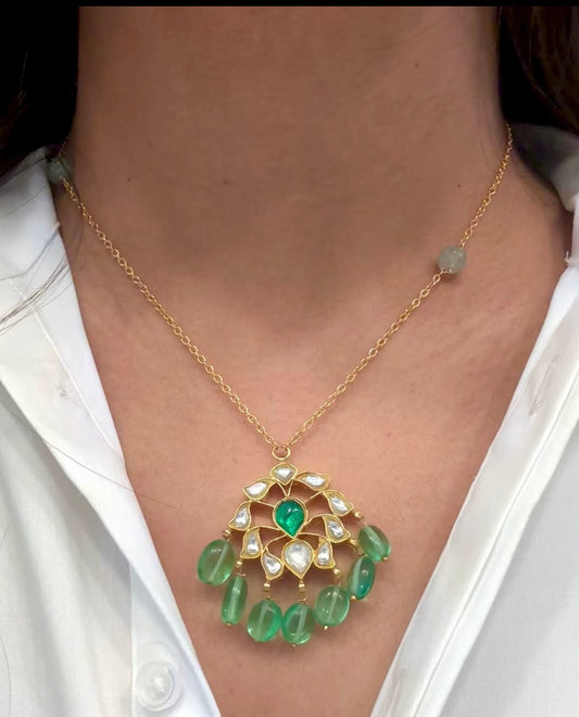 Real Moissanite Green Doublet Nano CZ Necklace Set
