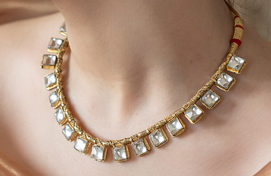 Shruti Dainty Kundan Necklace - Clear