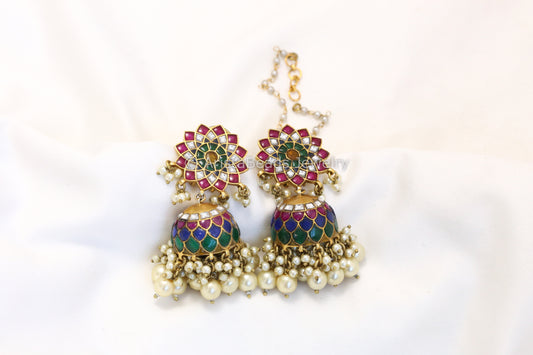 Sahana Antique Gold Jadau Kundan Jhumka - Navratan