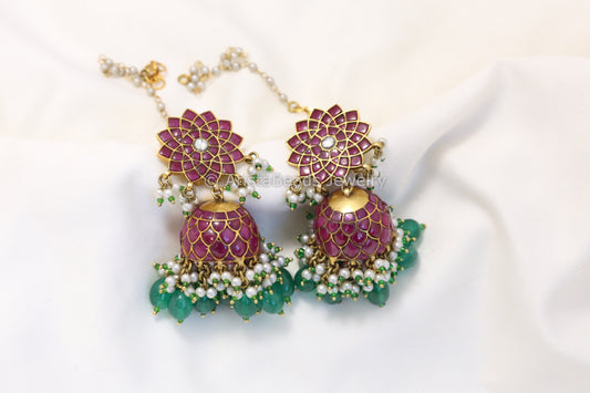 Sahana Antique Gold Jadau Kundan Jhumka - Ruby