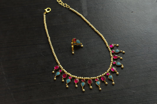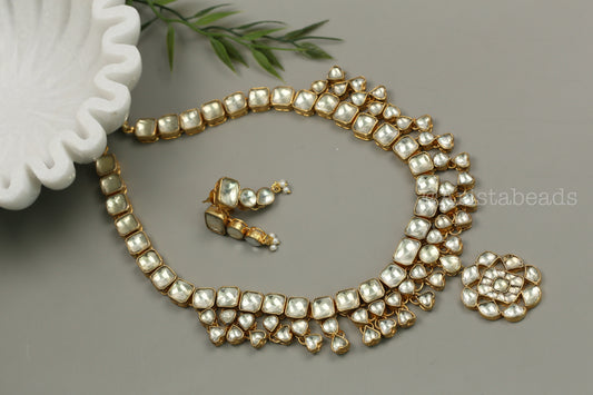 Meera Vintage Look Gold Foil Kundan Necklace Set