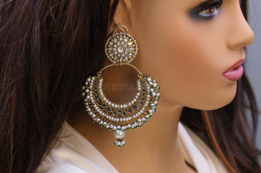 Sajada Vintage Gold Jadau Kundan Earrings - Blue