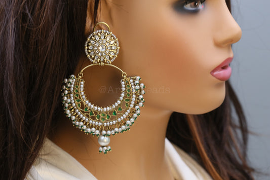 Sajada Vintage Gold Jadau Kundan Earrings - Green