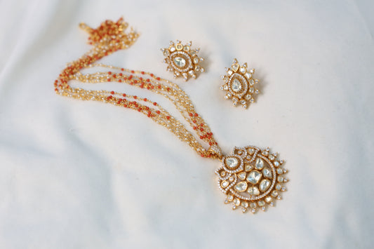 Aanvi Real Moissanite Pendant Set - Coral Mala