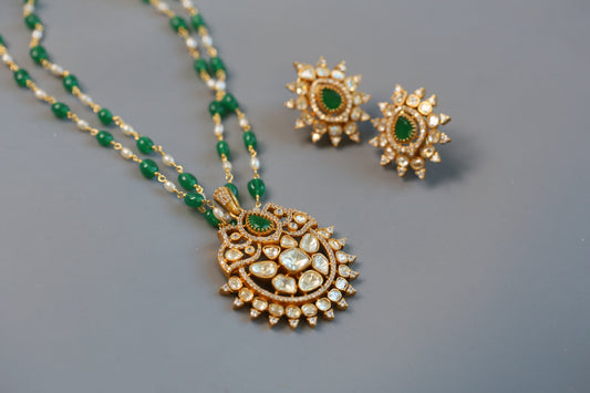 Aanvi Real Moissanite Pendant Set - Green Mala
