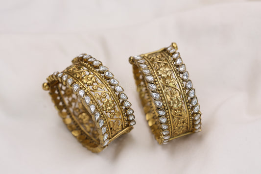 Vintage Gold Sona Silver Alloy Kundan Bangle Set (Openable)