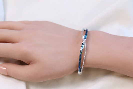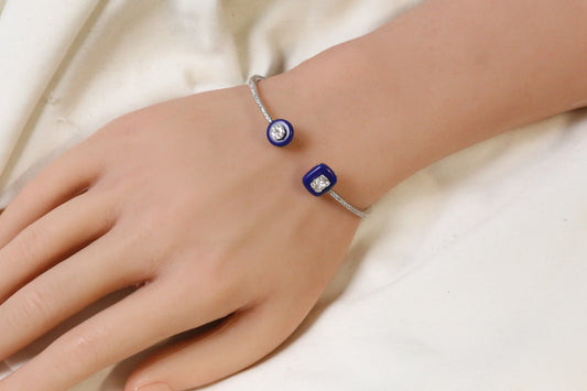 Angela Openable Micro CZ Bracelet- Lapis & Silver