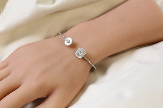 Angela Openable Micro CZ Bracelet- MOP & Silver