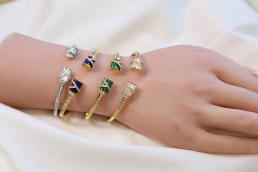 Angela Openable Micro CZ Bracelet- Malachite & Gold
