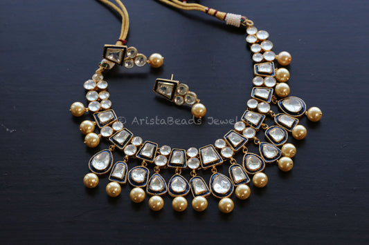 Roohi Meenakari Pachi Kundan Necklace Set -Black Enamel (103-81)