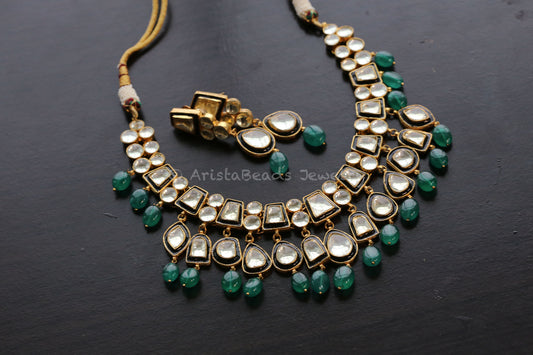 Adjustable Fusion Kundan, Doublet Hasli - Green (103-78)