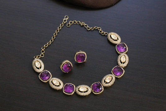Chandini Fusion Jadau Necklace Set (103-90) - Clear