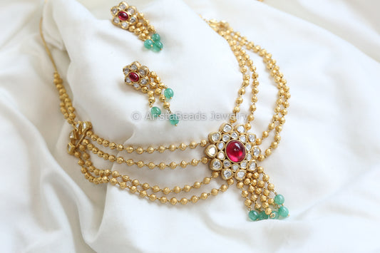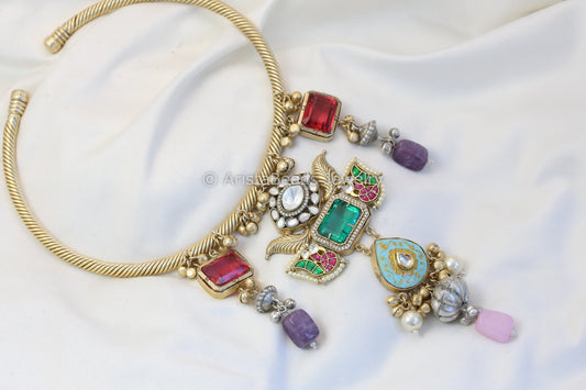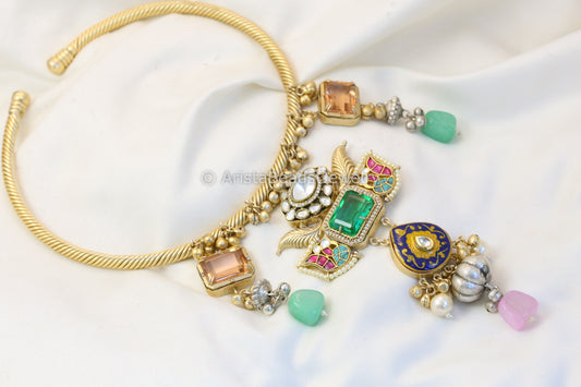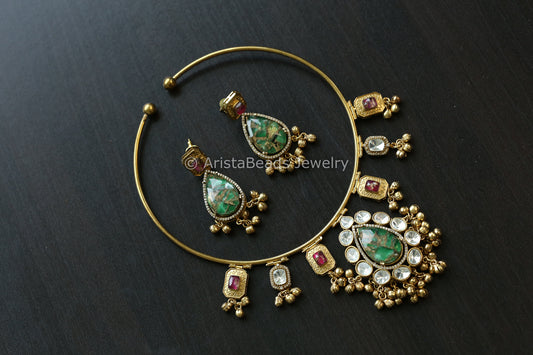 Premium Mosaic Doublet & Uncut Kundan Hasli Set (103-23)
