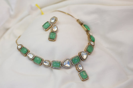 Fusion Kundan Polki & Doublet Hasli - Green Peach(103-34)