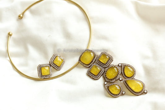 Removable Yellow Pota Doublet Pendant Hasli Set (103-10)