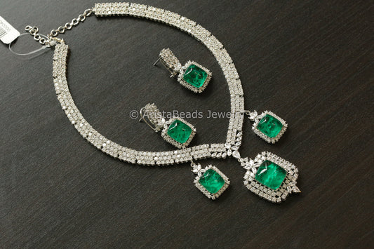 Contemporary CZ & Green Doublet Necklace Set (102-37)