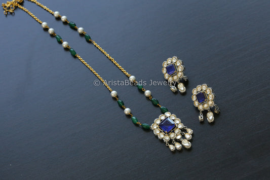 Dainty Blue Doublet Kundan Polki Set (102-45)