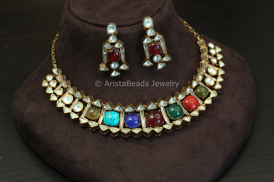 Dainty Layered Kundan Polki Necklace Set (102-51)