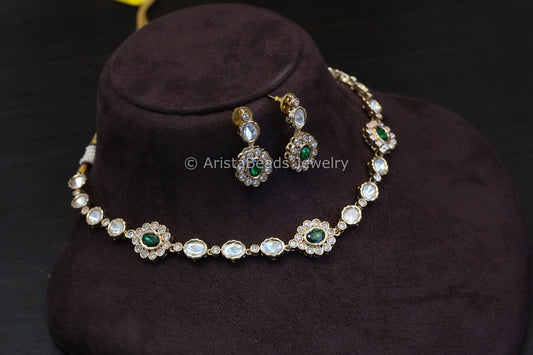 Dainty Polki & CZ Necklace Set (ABJ-N101-72)