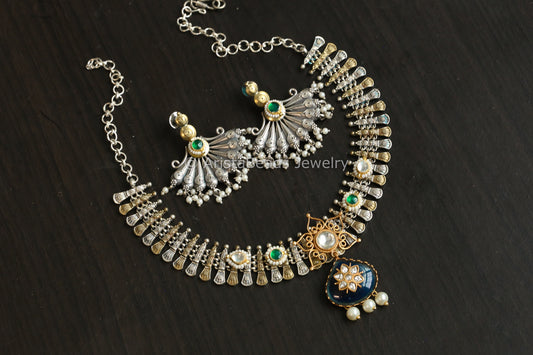 Dual Tone Fusion Kundan Set - Blue (ABJ-N101-67)