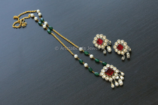 Dainty Red Doublet Kundan Polki Set (102-48)