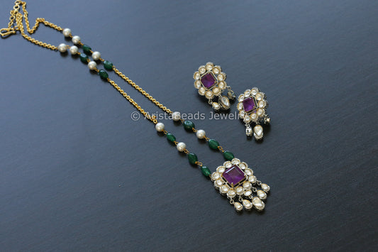 Dainty Purple Doublet Kundan Polki Set (102-47)