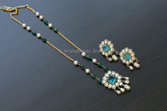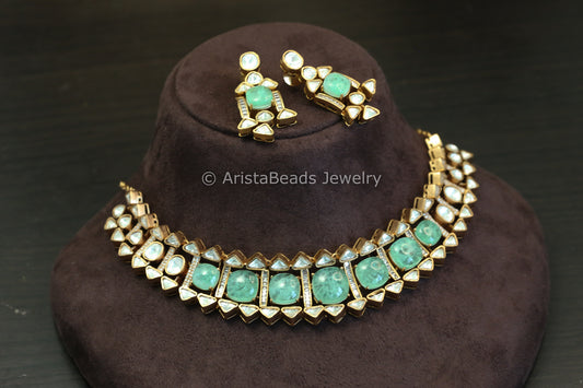 Dainty Aqua Doublet Kundan Polki Set (102-46)