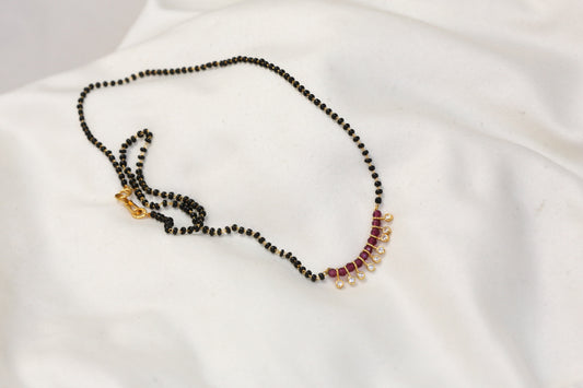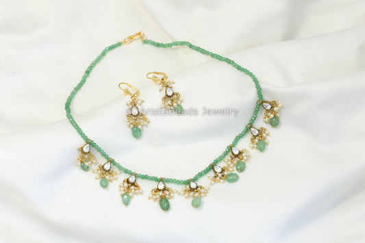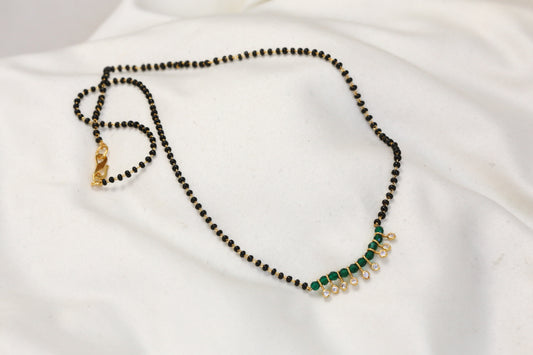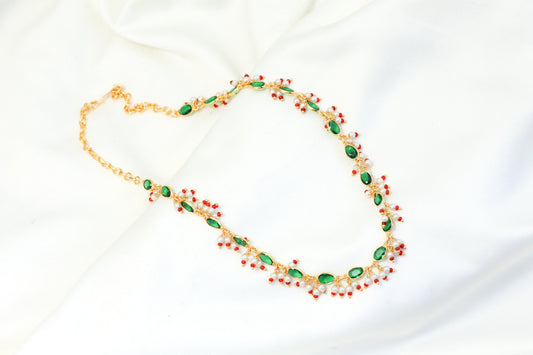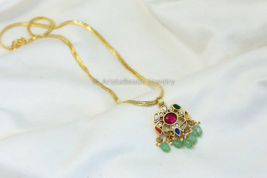 Dainty Jadau Pendant & Gold Chain - Navratna