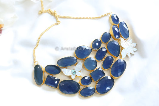 Contemporary MOP & Blue Faceted Hydro Necklace