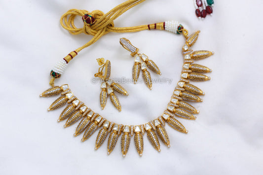 Dainty MOP & Kundan Fusion Hasli -Labradorite