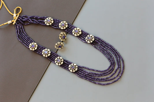 Mahira Premium CZ Doublet Necklace Set - Purple
