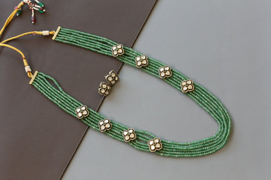 Jodha Vintage Polish Jadau Kundan Aad Choker Set - Green
