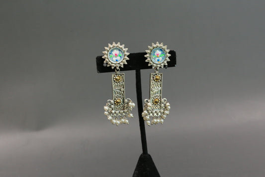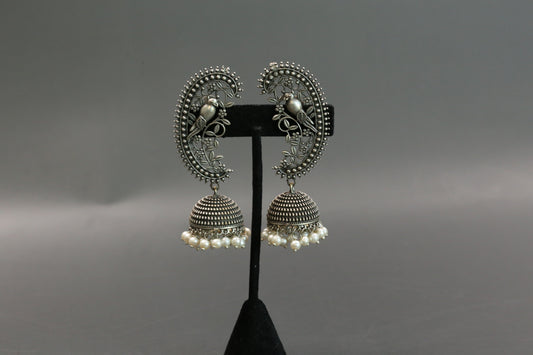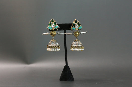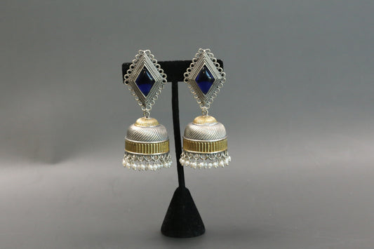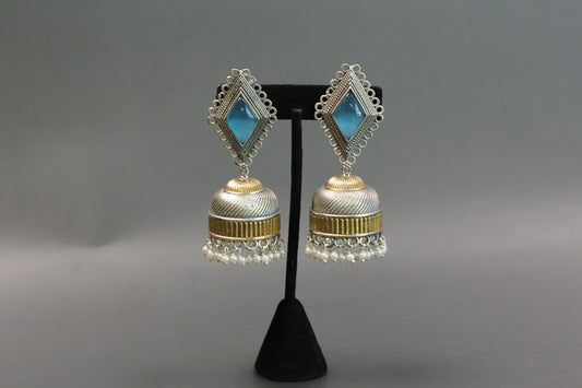 Zara Dualtone Oxidized Jhumka - Ice Blue