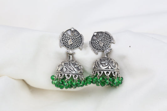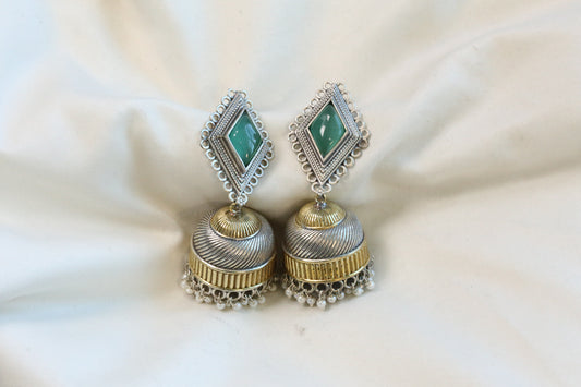 Sold outZara Dualtone Oxidized Jhumka - Mint