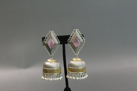 Sold outZara Dualtone Oxidized Jhumka - Pink