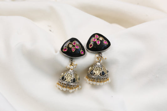 Preeti Kundan Fusion Jhumka - Black (ABJOC-33)