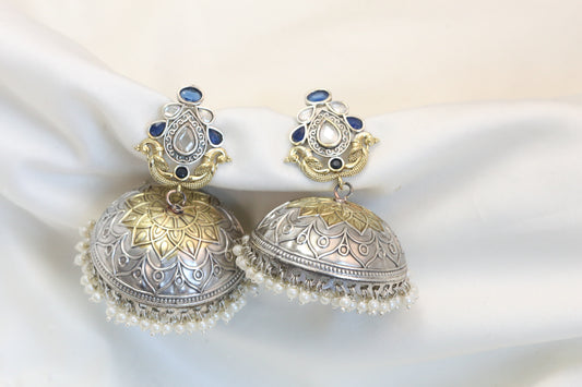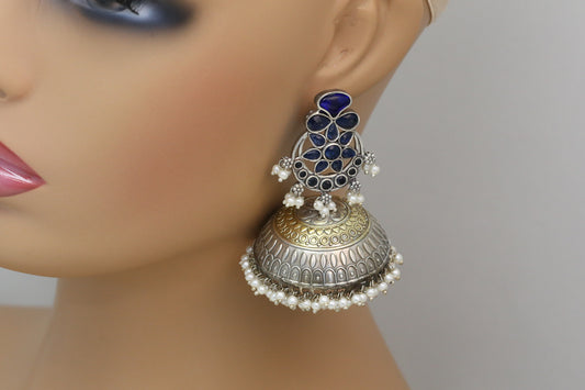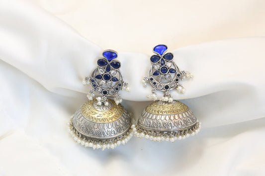Anuja Blue Silver Tone Chandbaali - ABJOC-02