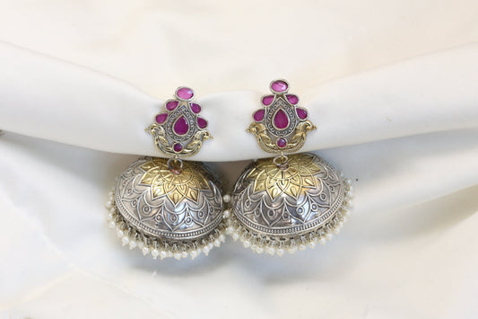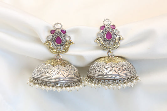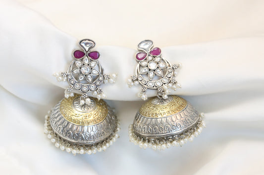 Khushi Kundan Fusion Layered Jhumka - Ruby (ABJOC-23)