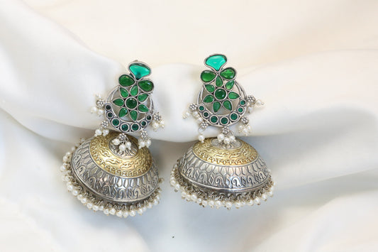 Khushi Kundan Fusion Layered Jhumka - Green (ABJOC-24)