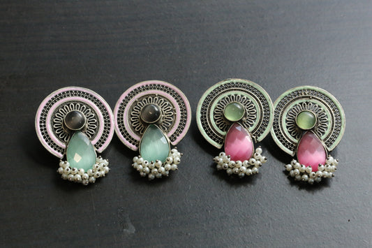 Monalisa Stone & Enamel Oxidized Earrings