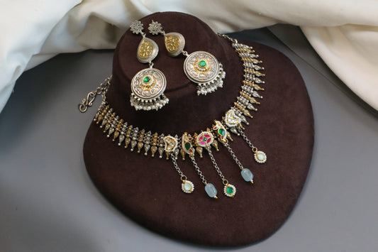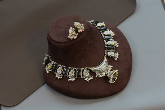 Madhu Oxidized Kemp Necklace Set - Clear Ruby