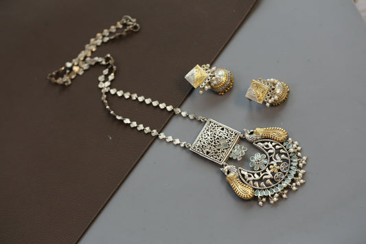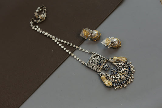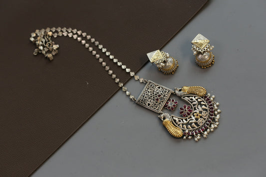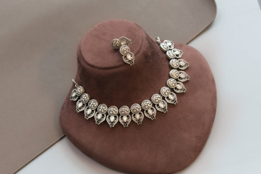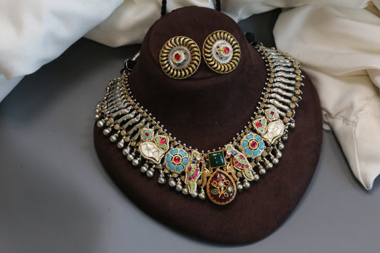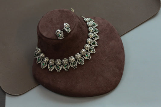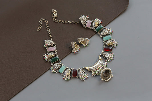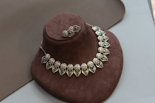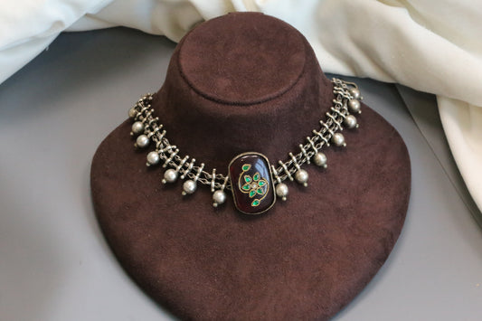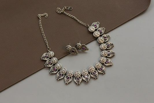 Madhu Oxidized Kemp Necklace Set - Ruby