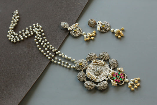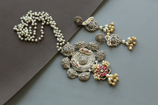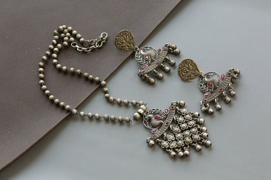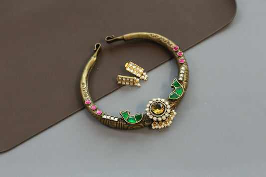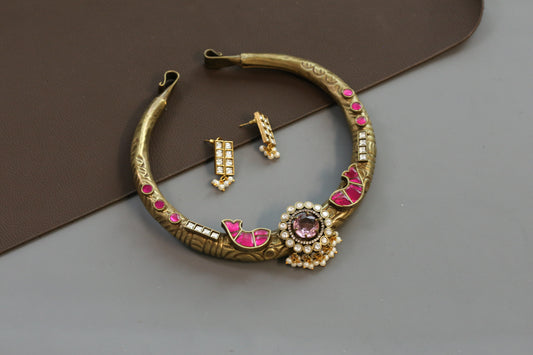 Vintage Look Rubina Hasli Necklace Set - Pink Stone
