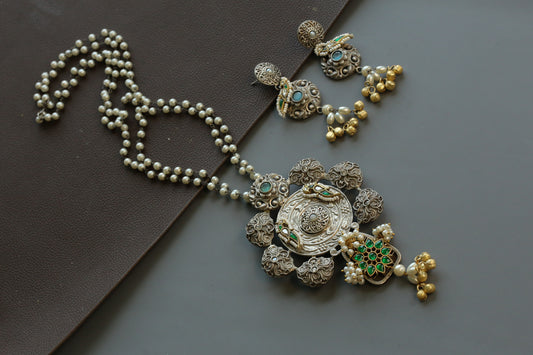 Vintage Look Rubina Hasli Necklace Set - Mint