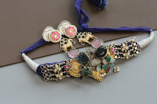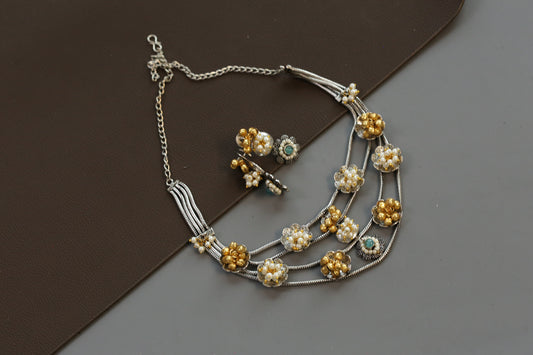 Vintage Look Rubina Hasli Necklace Set - Blue