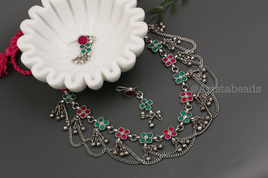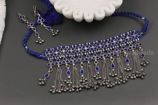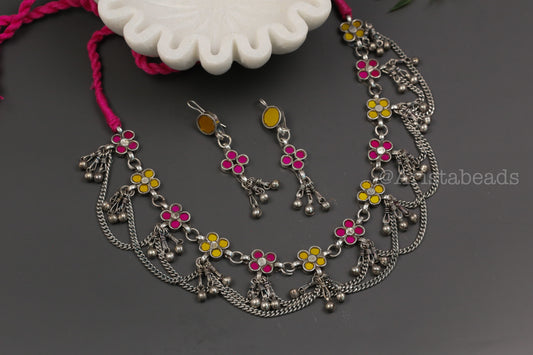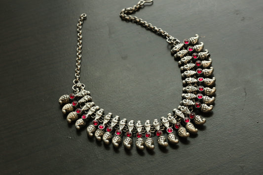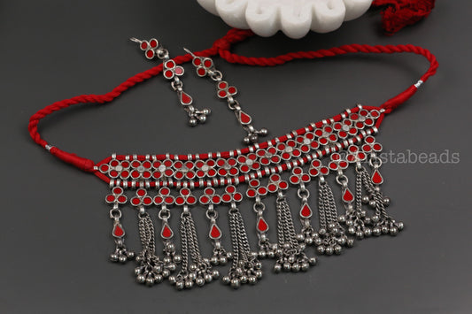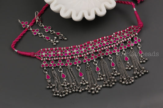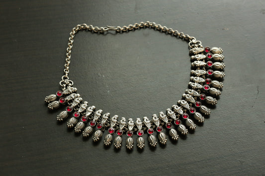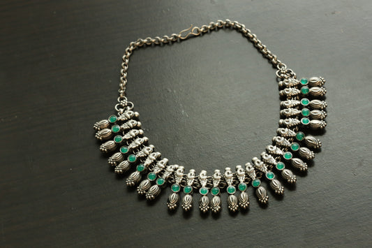 Rachna Real Glass Oxidized Necklace (T103-56)