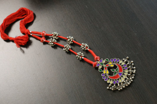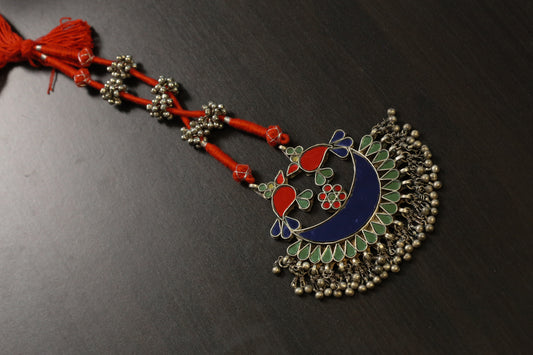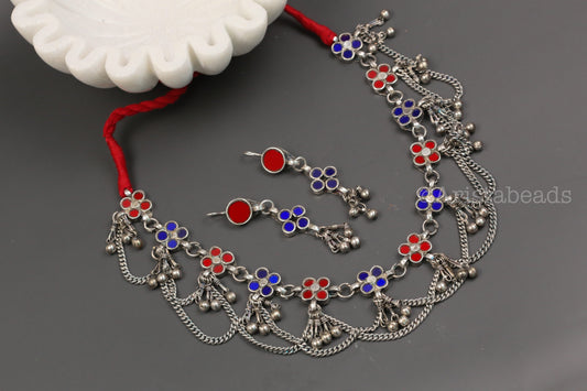 Real Glass Oxidized Necklace (T103-51) - Red Blue