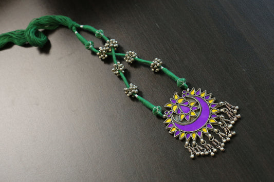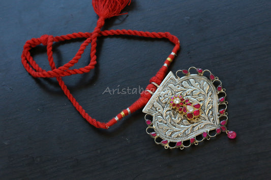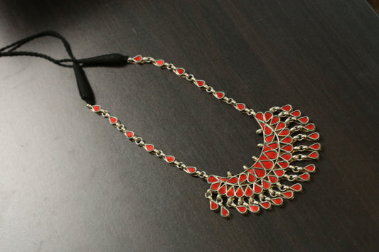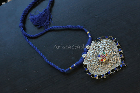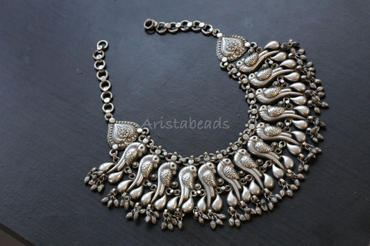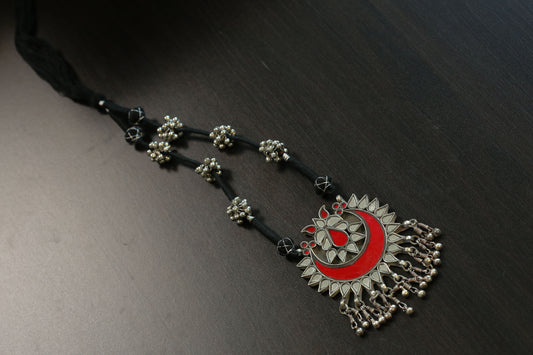 Shakti Next To Real Silver Carved Oxidized Necklace (T103-09)